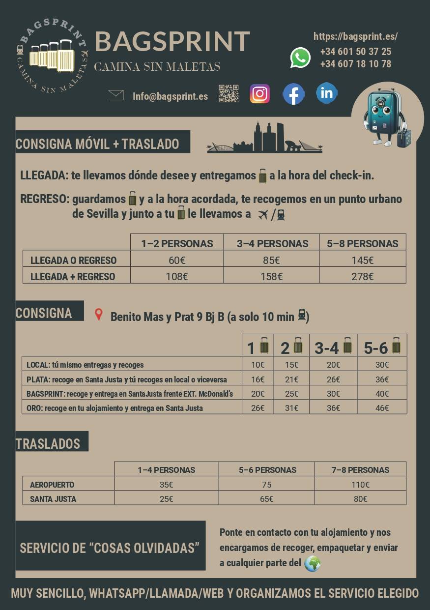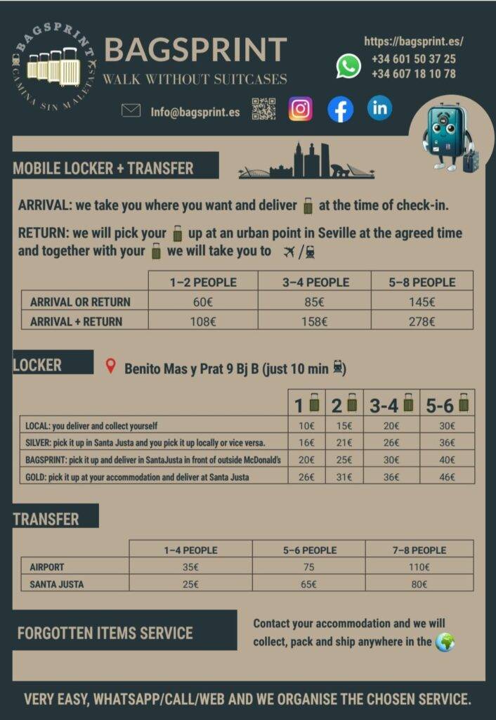 CAMINA SIN MALETAS POR SEVILLA - SERVICIO DE CONSIGNA DE EQUIPAJE EN NERVIÓN (SANTA JUSTA)